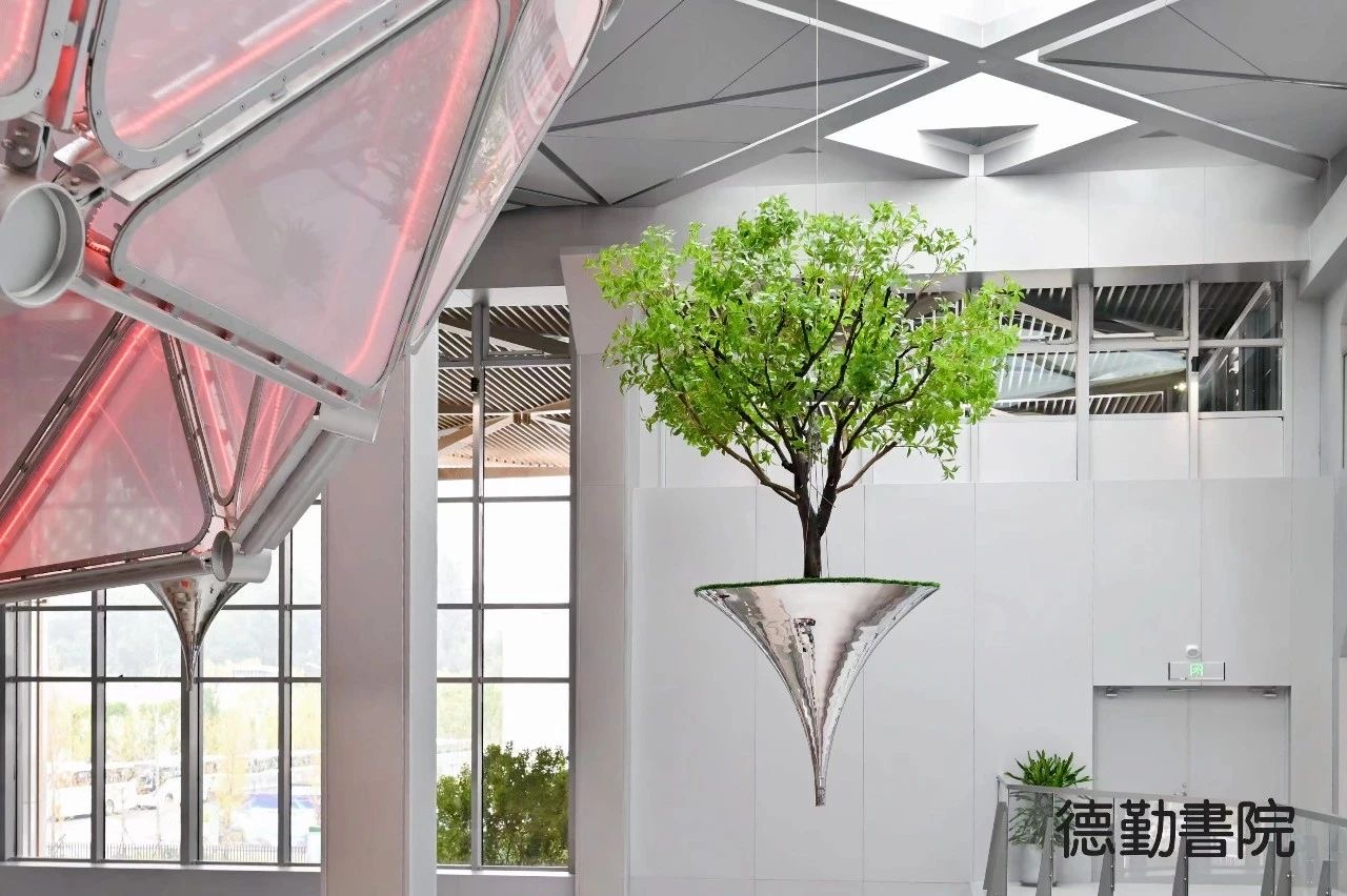 整個書院從建筑風格到細節打造無不彰顯著中國傳統文化的智慧與深邃。從“大燈籠”到“智慧樹”,時刻踐行著德勤打造“綠色技術空間”的創新理念,處處體現了科技與創新珠聯璧合的疊加效應。