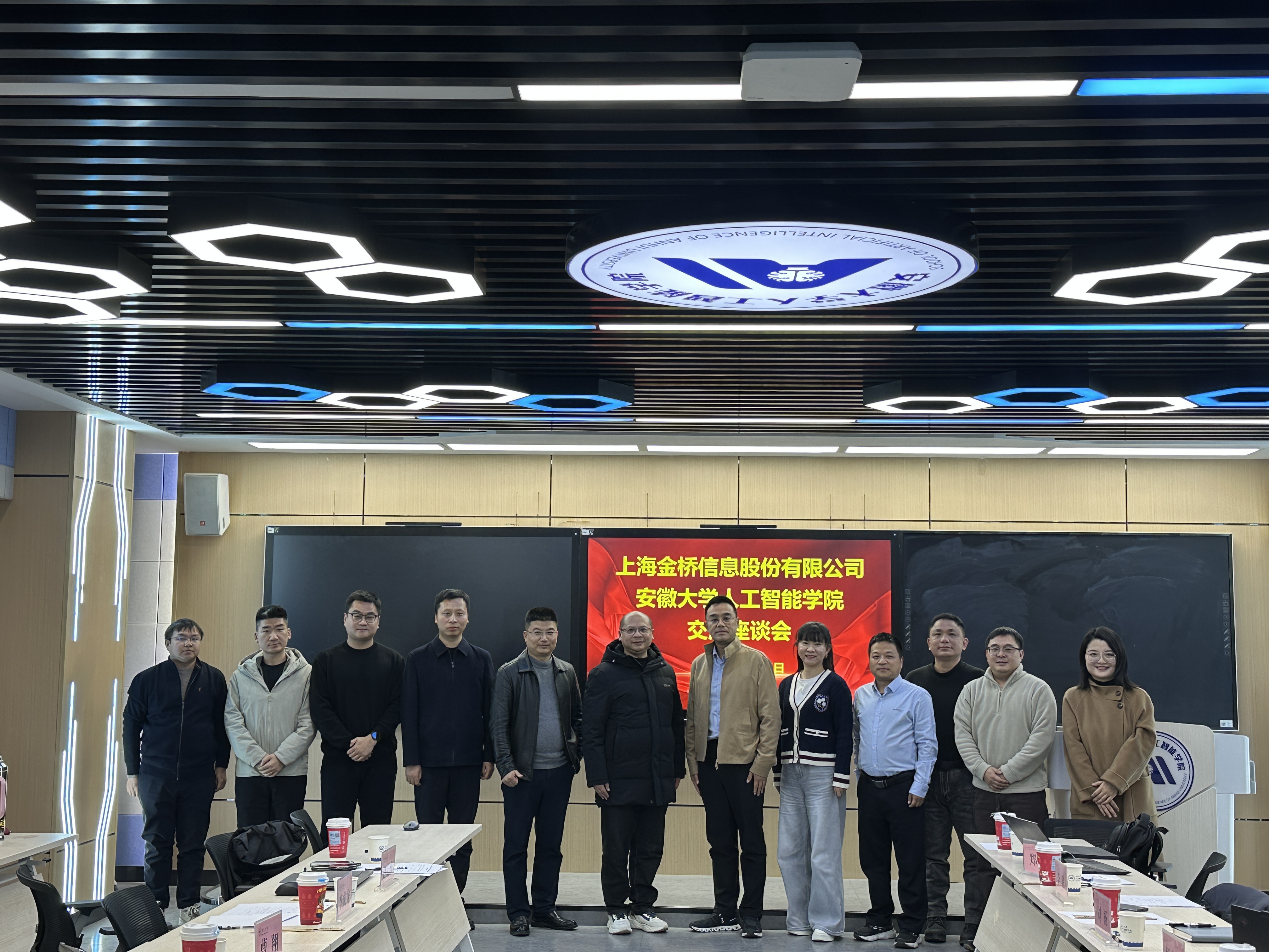 12月15日,一場聚焦前沿、共謀未來的戰(zhàn)略對話在安徽大學人工智能學院火熱開展。上海金橋信息股份有限公司董事楊家驊先生、副總經(jīng)理馮蕾女士、副總經(jīng)理劉楊先生、AI創(chuàng)新中心總監(jiān)馮健先生、合肥分公司經(jīng)理李昌先生、合肥分公司副經(jīng)理兼安徽教育行業(yè)負責人鄭遠見先生及高級銷售經(jīng)理劉慧女士等一行到訪安徽大學人工智能學院并與學院專家學者齊聚一堂,共同探智能時代產(chǎn)教融合新路徑。